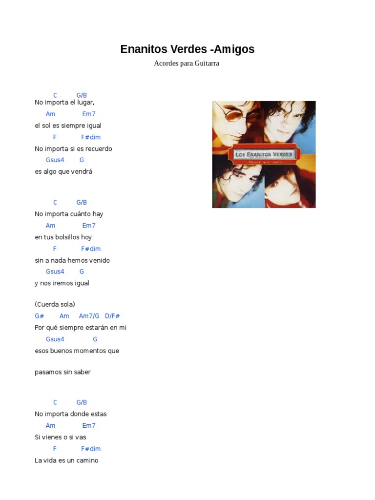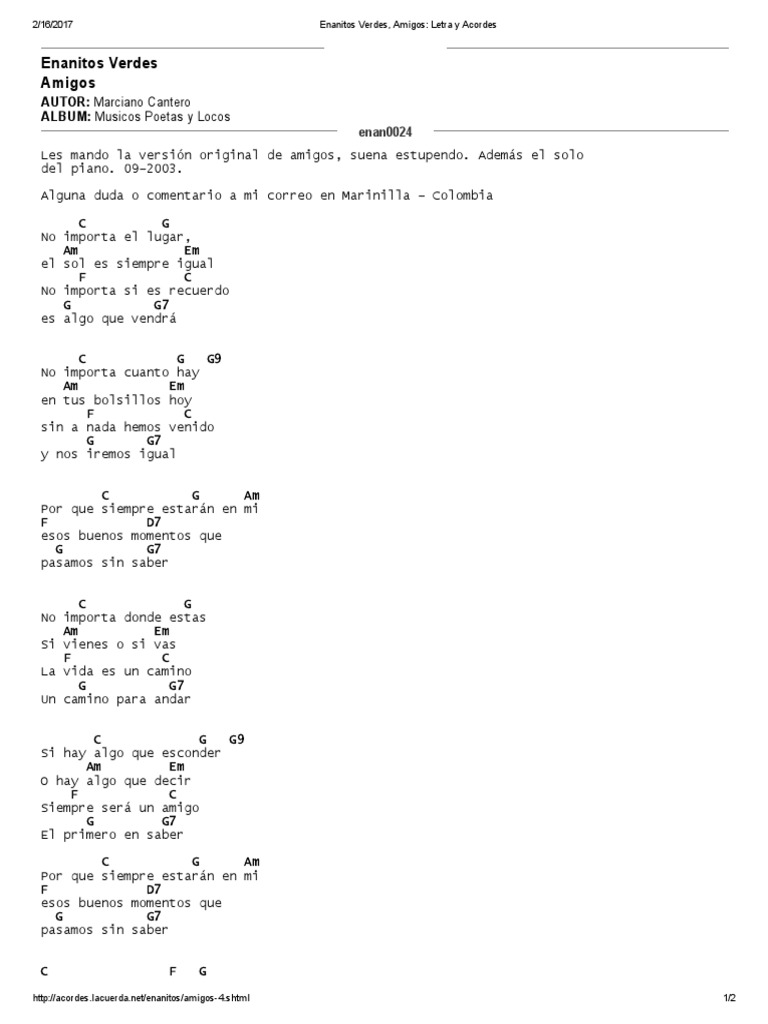 Amigo Enanitos Verdes Letra - G# am am7/g d/f# por que siempre estaran en mi g4 esos buenos momentos que g pasamos sin saber. Amigo Enanitos Verdes Letra / Letra y acordes de amigos.
