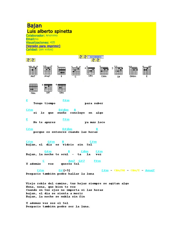Bajan Acordes Y Letra Para Guitarra Ukulele Bajo Y Piano Luis Alberto Spinetta - Includes transpose, capo hints, changing speed and much more.