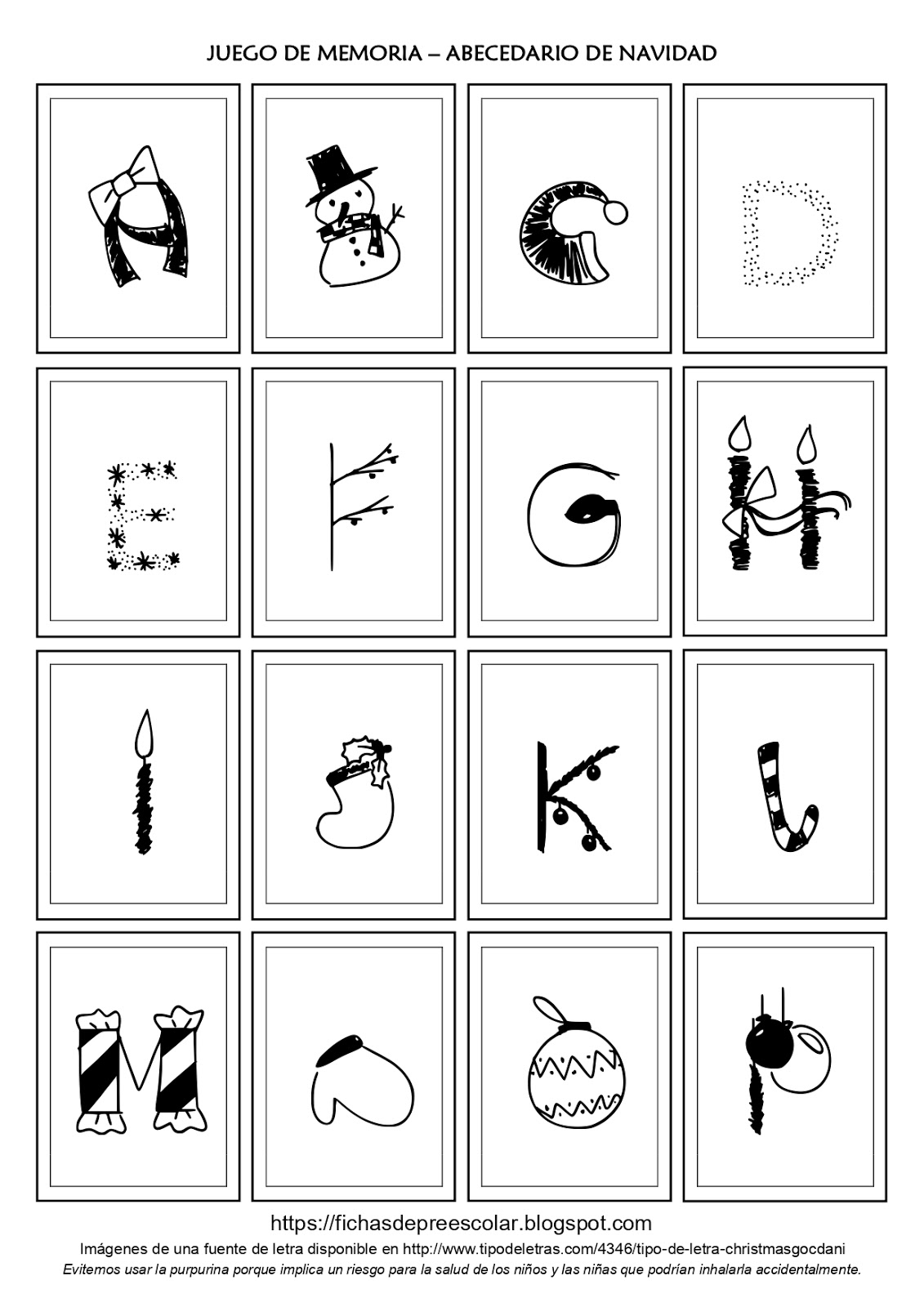 Fichas De Educacion Preescolar Juego De Memoria Abecedario De Navidad En Mayusculas Tarjetas Imprimibles Para Practicar La Percepcion Atencion Y Memoria - En el cuadro de dialogo, busque y seleccione las propiedades de impresion a color, escala de grises o en blanco y negro.