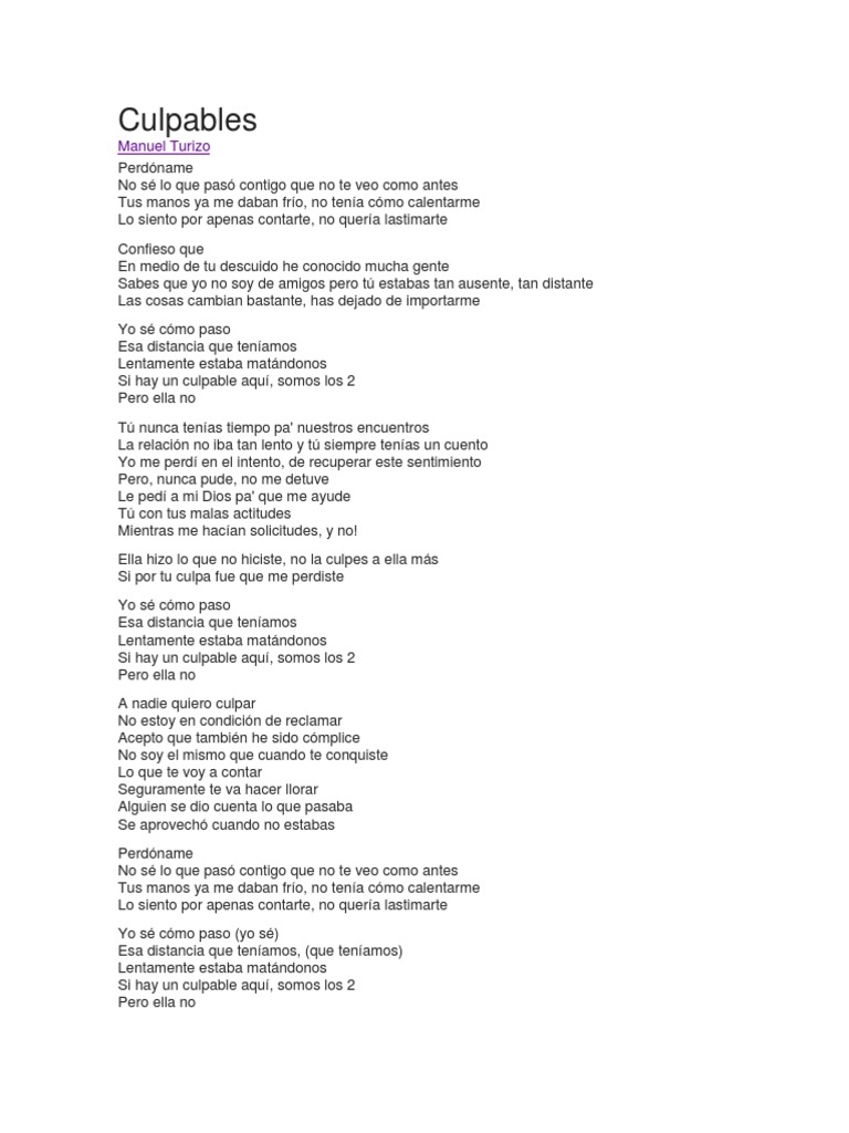 Culpables De Manuel Turizo Letra Y Video Happyfm - (11) pronuncio el nombre de juana repetidas veces, cada una de ellas mas fuerte que las anteriores, pero juana no respondia y ella continuaba aferrada a su propio miedo.