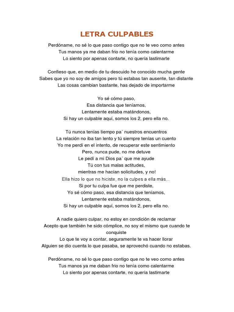Culpables Letra - Ya no tiene sentido y la relacion desaparece.